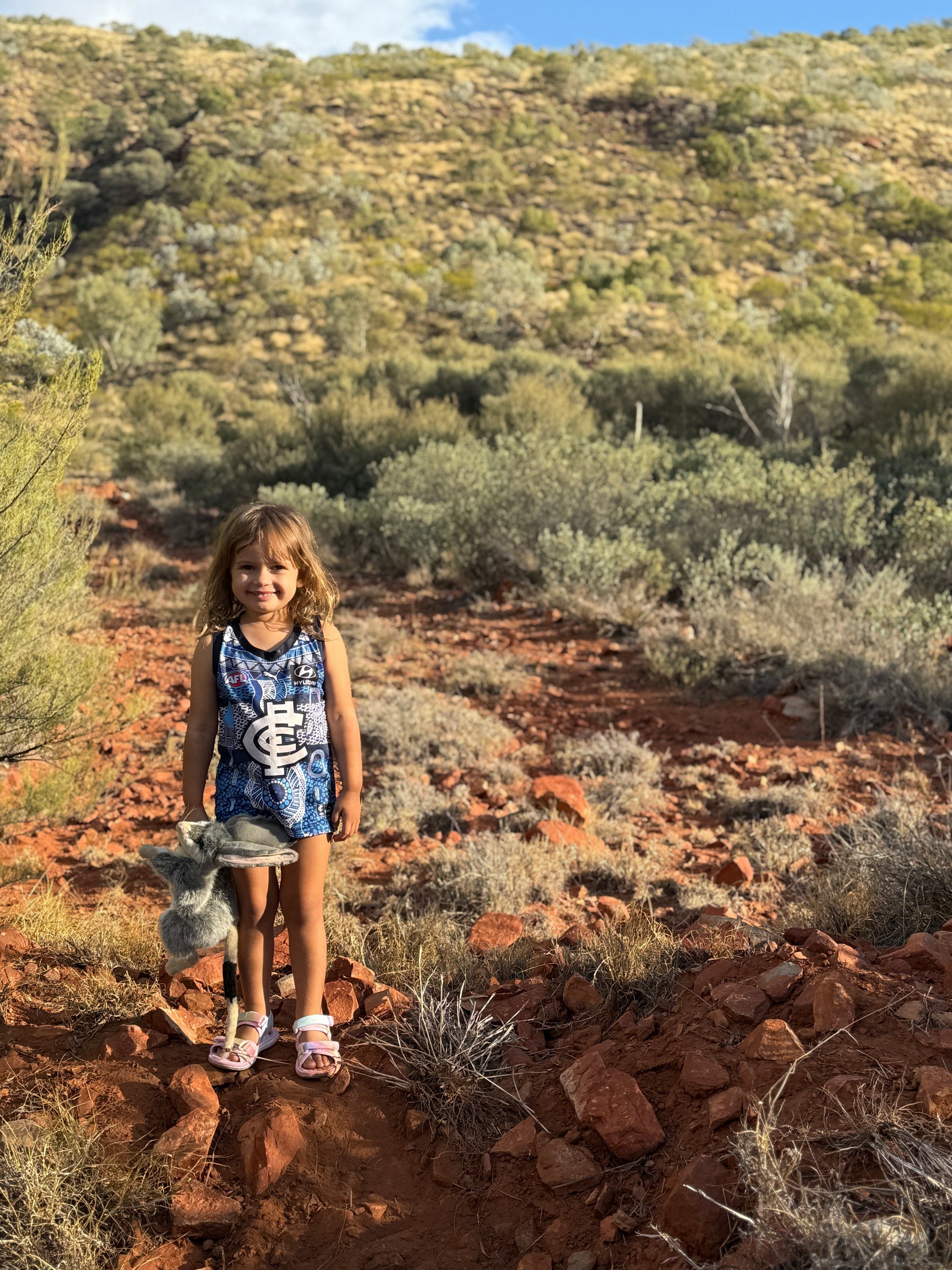 Our latest wrapping paper features an original artwork by Remi Bertus, who is just three years old and a member of the Children’s Ground Early Years program at Irrkerlantye. Remi created her artwork, Red Dust Remi, on country during a Children’s Ground session earlier this year.