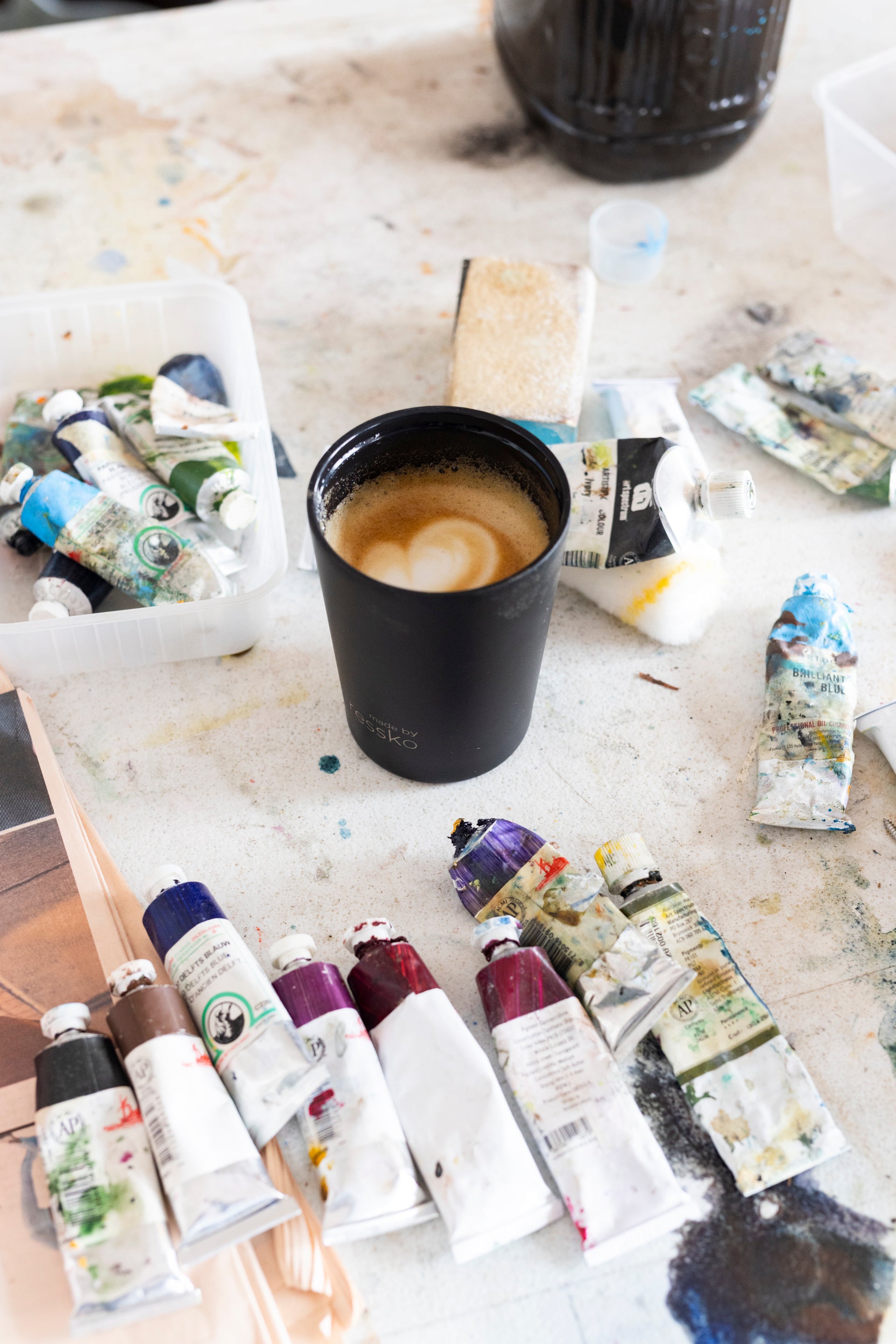 We spoke to Will at his beautiful Lorne property, The Artist’s Beach House (which is now available to rent!), about the rituals behind this creative practice, the role that coffee plays in his days, and what makes his Cathedral Rock home so special. Whether in Ibiza or Melbourne, coffee is an always-reliable companion to artmaking, as both stimulant and structure. The Artist’s Beach House itself is its own self-contained world, grounded in the pleasure of stepping back and disconnecting. It offers a safe, suspended moment of calm – the kind of place where an artist – even in the tumult of creation – can return to the simple daily habits that make space for the work to arrive.