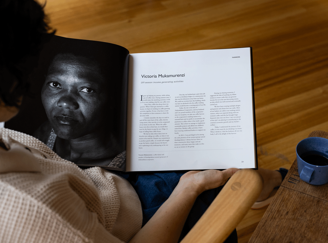 100% of the profits from the sale of this book will be donated to ‘Supporting Strong Women’, a fundraising campaign for Rambagirakawa, a collective of women coffee producers in Northern Rwanda, (some of whom are featured in this book). The money raised will be used to build a child day-care centre – a long-held goal that will directly impact the women’s productivity and prosperity, while ensuring their children are cared for in a safe, happy and nurturing environment.