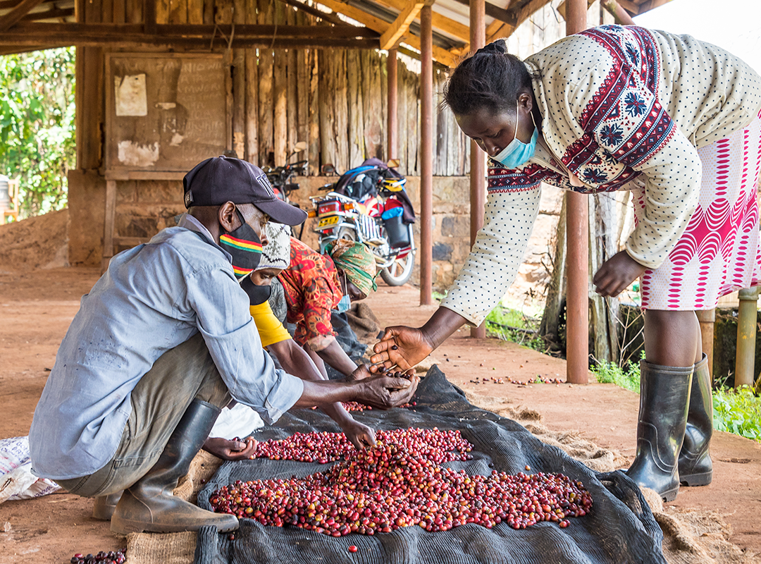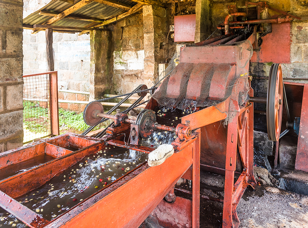 Established in 1958, Ichuga is one of four stations owned by the Kiama Farmers’ Cooperative. Managed by Stephen Kinyue, it processes coffee cherries from around 800 of Kiama’s members, whose small farms sit on the southern slopes of Mount Kenya. The land surrounding Ichuga is rich in biodiversity, as it lies close to the Ragati Conservatory. The area is also defined by its bright red, nutrient rich soil, cool climate and high elevations, which together contribute to the outstanding quality of coffees produced here.