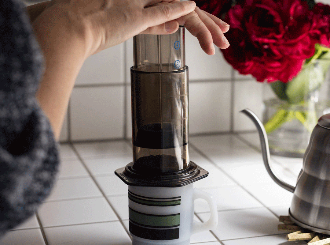This clever little device produces a cup of coffee with the body of a plunger brew and the clarity of a pour over. The coffee grounds are brewed with full immersion and then pushed through a paper filter straight into your cup!